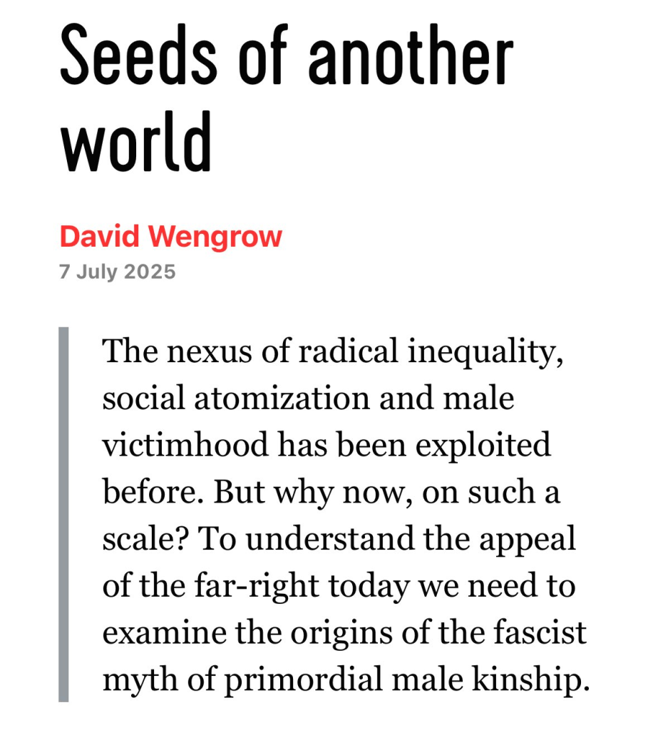The nexus of radical inequality, social atomization and male victimhood has been exploited before. But why now, on such a scale? To understand the appeal of the far-right today we need to examine the origins of the fascist myth of primordial male kinship.