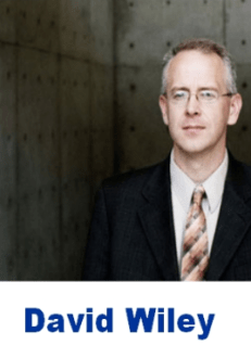 Dr. David Wiley is Associate Professor of Instructional Psychology and Technology at Brigham Young University, where he also serves as Associate Director of the Center for the Improvement of Teacher Education and Schooling with responsibility for the research unit.