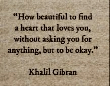 how beautiful to find a heart that loves you w/o asking you for anything, but to be ok – khalil gibran