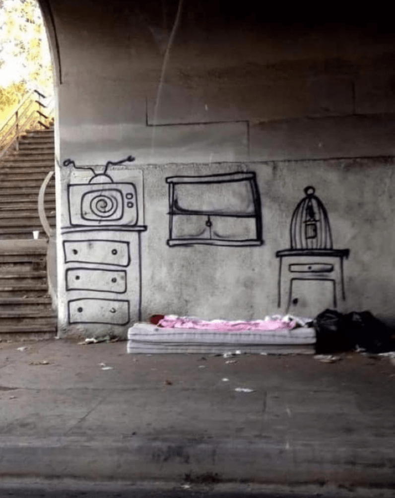 [image via and linked to fb share by martin smith – via heather: ‘This piece of art created by a homeless guy is the most poignant, thought provoking and powerful statements I have seen about homelessness…’]