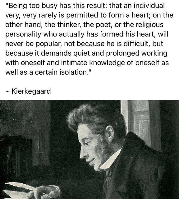 who actually has formed his heart will never be popular.. not because he is difficult.. but because it demands quiet and prolonged working w oneself.. a certain isolation – søren kierkegaard