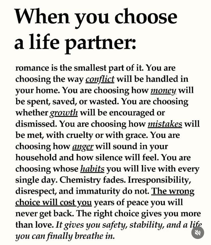 choosing the way conflict, growth, anger, silence, .. will be handled.. wrong choice will cost you years of peace you will never get back @Tarmeim