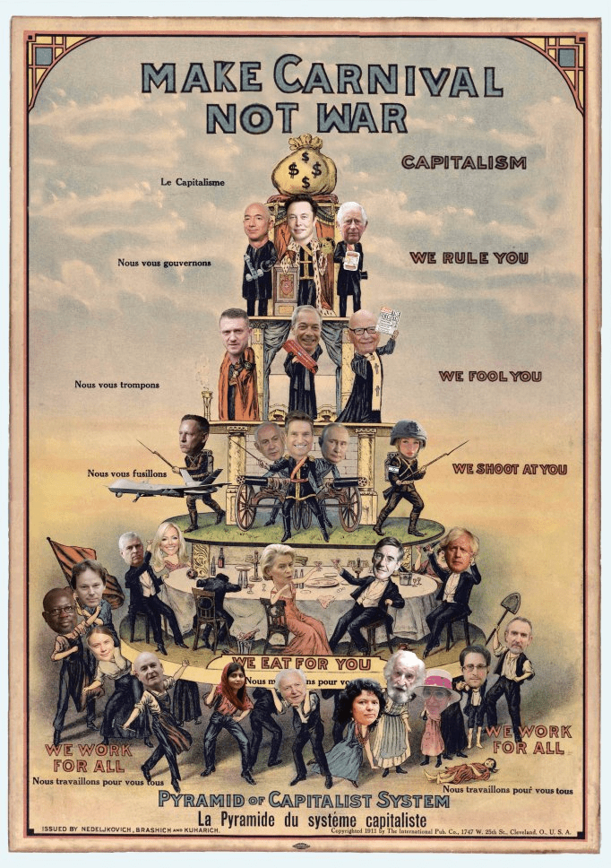 michael: carnival against capitalism.. if we say it’s a carnival they’re not going to shoot us.. could get away with more.. carnival made by the protest