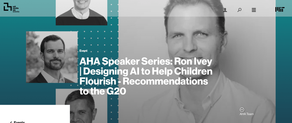 At 4:30pm ET on Thursday, September 4, join us for the next installment of the seminar series hosted by @AHA_MediaLab! Our guest speakers will be @ronivey, Jonathan Teubner, Nathanael Fast, and @Ravi Iyer; the discussion will be moderated by Prof. Pattie Maes (@fluidinterfaces). [https://media.mit.edu/events/aha-speaker-series-ron-ivey/]