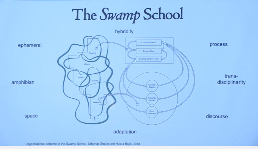 8 min – more than 300 people involved in swamp school.. in 2017.. venice exhibition and we proposed swamp as new learning environ.. unknowable space.. t