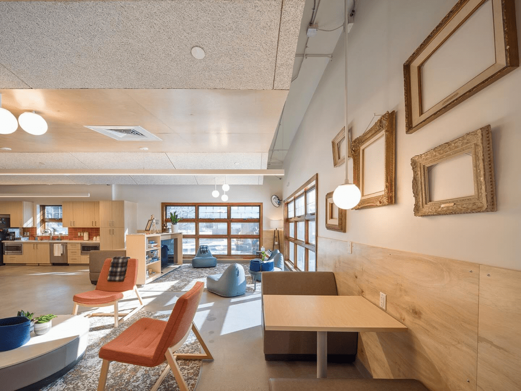 At The Landing, every space has been carefully designed to promote safety, comfort, and connection—core principles of Trauma-Informed Design (TID). From soothing sensory elements to flexible gathering spaces and community-inspired artwork, The Landing is more than a shelter—it’s a place where youth can feel at home while transitioning into independence.